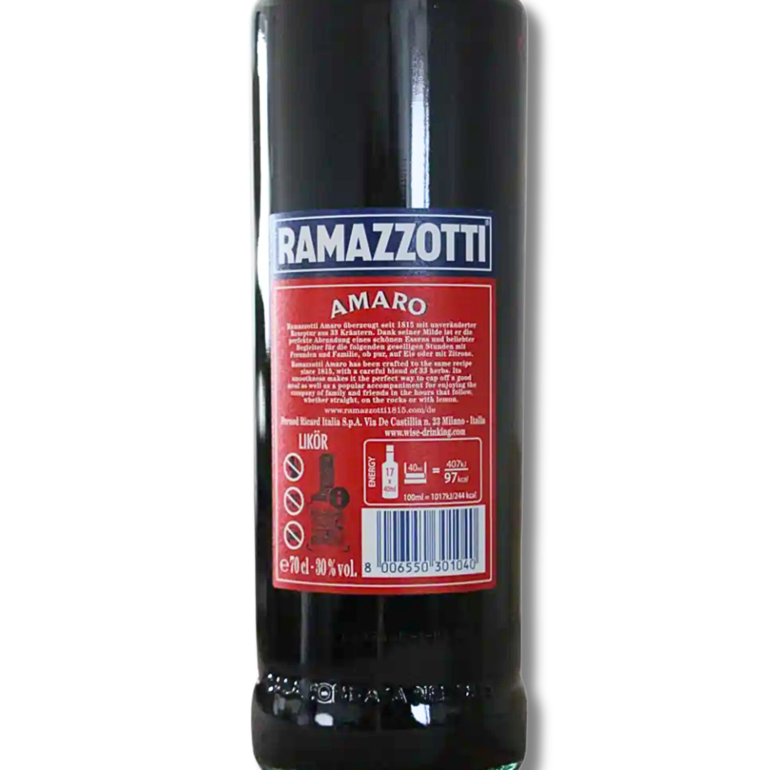 Ramazzotti Amaro 0.7 ist von der Firma Fratelli Ramazzotti S.p.A. hergestellt. Das Unternehmen wurde im Jahr 1815 in Mailand, Italien, gegründet und ist seitdem für die Produktion des beliebten Kräuterlikörs verantwortlich. Fratelli Ramazzotti S.p.A. hat im Laufe der Jahre seine Rezeptur und Herstellungstechniken weiterentwickelt, um den einzigartigen Geschmack und die Qualität des Ramazzotti Amaro zu gewährleisten. Abgefüllt ist er in einer 0,7 Liter Flasche mit 30 % Vol. Ramazzotti Amaro 0,7 Liter und 30 % Vol.